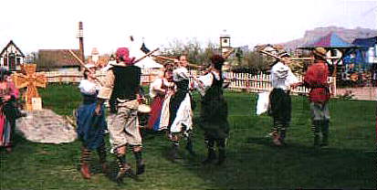 Another act that was also done with a lot of zeal was the Bedlam Bells Morris Team. Morris dancing was a novel experience for me. This style appears to have the dancers wearing bells strapped to their ankles and beating sticks while doing their formations. In another part of their act, a pseudo-competition occurs between the female members as they try to outdance each other while holding white scarves (Photo, below). The woman pictured did some impressive jumps in the air and yes, those are pantaloons with cow patterns that she's wearing!
